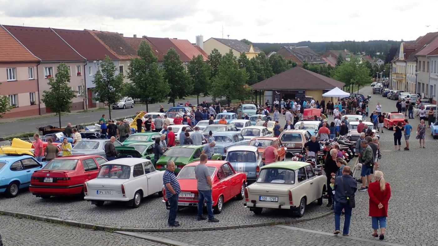 Historické vozy a motocykly, dokonce i starý americký autobus s lodí - to vše mohou zájemci vidět v sobotu 12. července na černošínském náměstí.