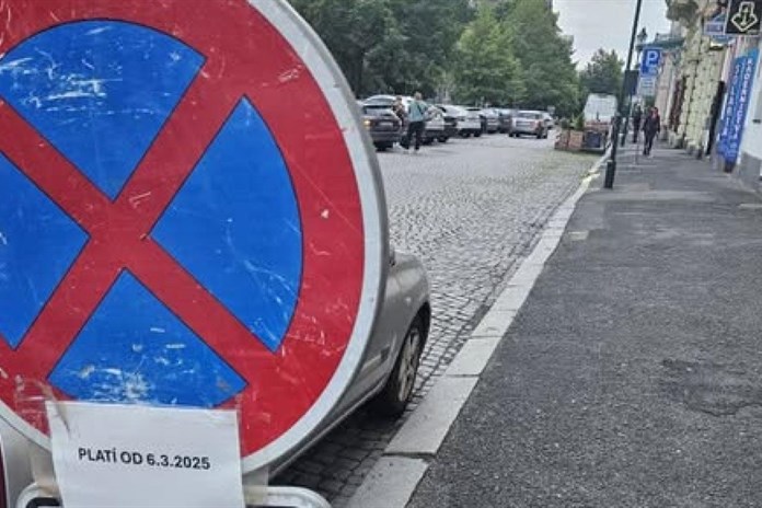 Značka zákazu zastavení se objevila v neděli v Kopeckého sadech. Blokovala hned 6 parkovacích míst, vozidlu, které zde stálo již od soboty, mohla hrozit pokuta a navíc všechna místa okolo byla plná.