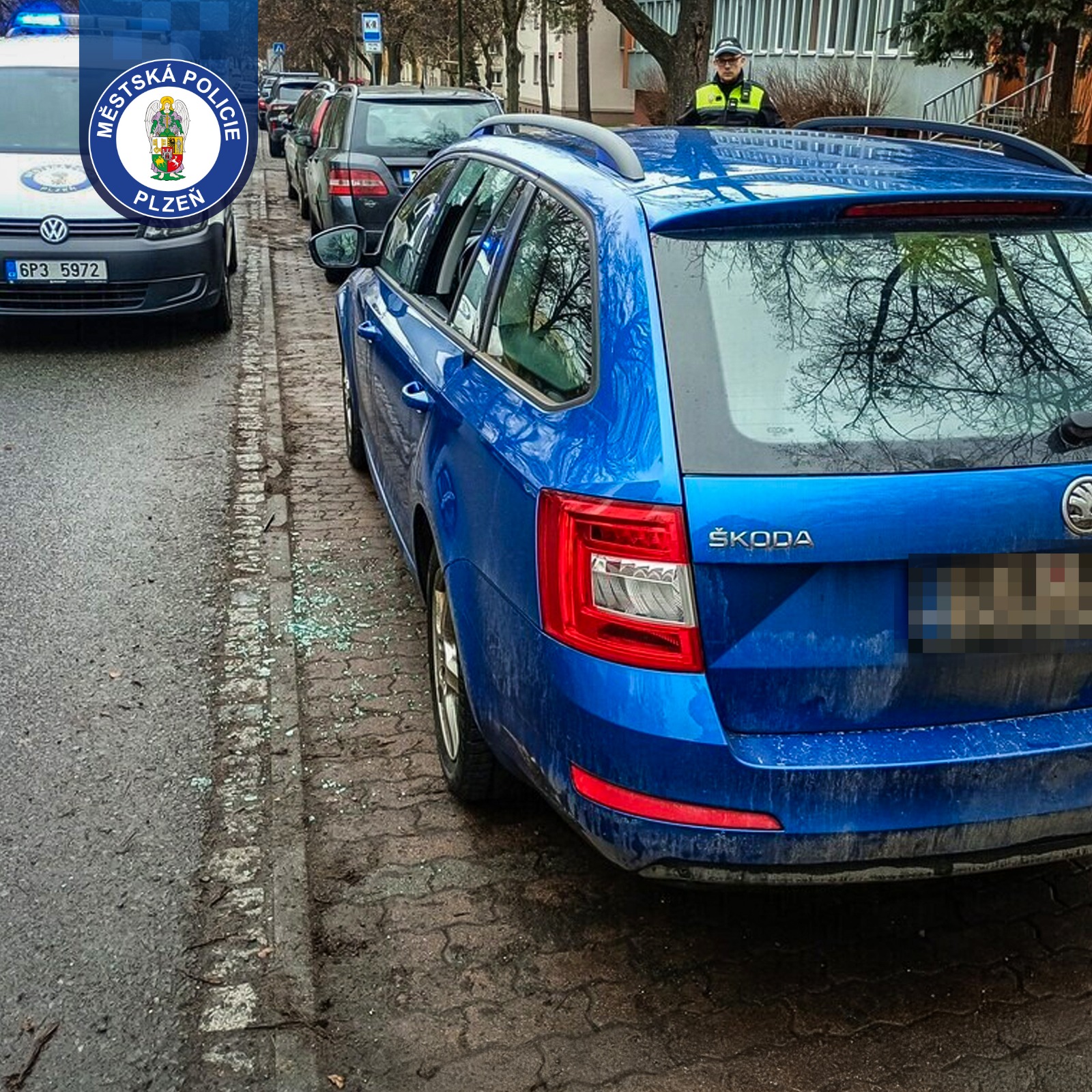 Hlídka Městské policie Plzeň byla na místě během několika minut. „Uvnitř vozidla i na zemi ležely střepy, které jasně ukazovaly na násilné vniknutí. Strážníci pojali podezření na spáchání trestného činu, přivolali státní policii a místo zajistili tak, aby nedošlo k narušení stop,“ uvedla mluvčí strážníků Jana Pužmanová. Krátce poté dorazil i majitel vozidla, který uvedl, že v autě nechal dokumenty, sportovní vybavení a oblečení.