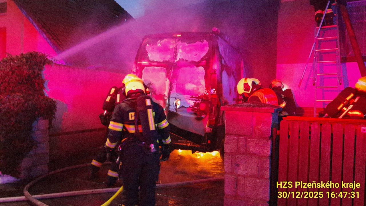 V Tlučné na severním Plzeňsku hořela dnes odpoledne obytná dodávka stojící pod přístřeškem rodinného domu. Oheň se částečně přenesl i na sousední obytný dům. Nikdo nebyl zraněn, škoda bude minimálně milion korun.