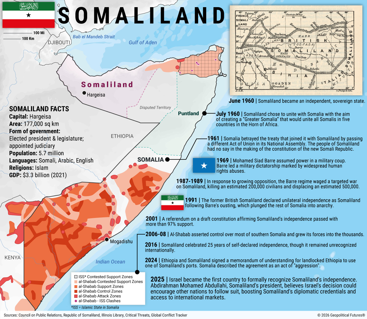 Vyvrcholením 30 let budování de facto státu bez formálního uznání je právě krok Izraele, který je sice čistě pragmatický, nicméně to neznamená, že by si Somaliland uznání nezasloužil. Izrael se snaží získat v regionu stabilního partnera, kterého by mohl využívat v boji proti povstalcům v Jemenu, vzdálených vzdušnou čarou jen pár stovek kilometrů. Současně uznáním Somalilandu Izrael oslabuje Somálsko, jež je součástí Ligy arabských států, čímž činí další krok k vymanění se z mezinárodní izolace ze strany členských států. Podporu má tento krok i na straně Etiopie, která Somálsko považuje právě kvůli zmíněné válce o Ogaden za rivala a hrozbu a fakticky činila vše proto, aby Somalilandu pomohla etablovat se na mezinárodní scéně např. prostřednictvím uznávání somalilandských pasů při cestování s Ethiopian Airlines. Mimochodem, je to pár dní, co tyto pasy začaly akceptovat Spojené arabské emiráty a současně potichu přestaly vydávat víza Somálsku.