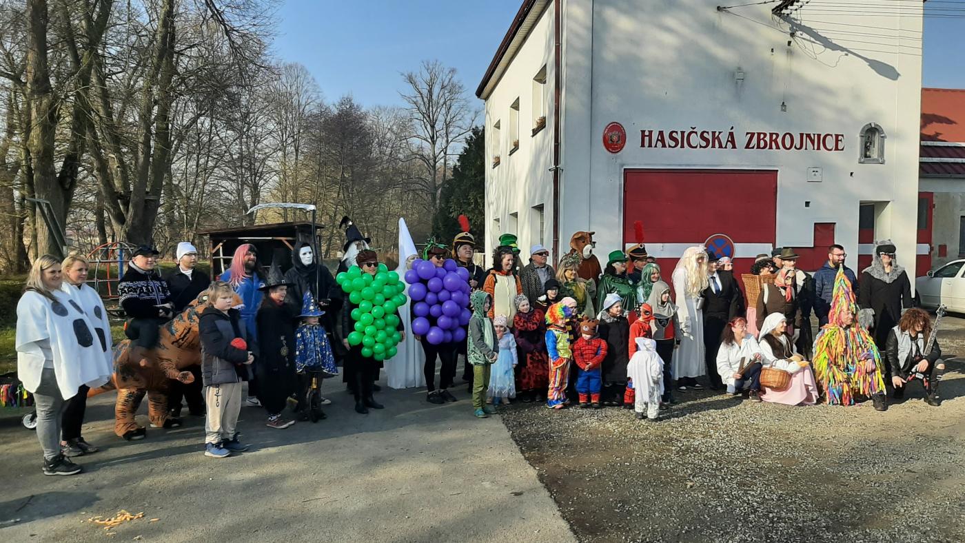 V půl deváté ráno se sešly masky u hasičské zbrojnice, odkud se v devět hodin po symbolickém předání klíče od města vydal masopustní průvod na cestu obcí.