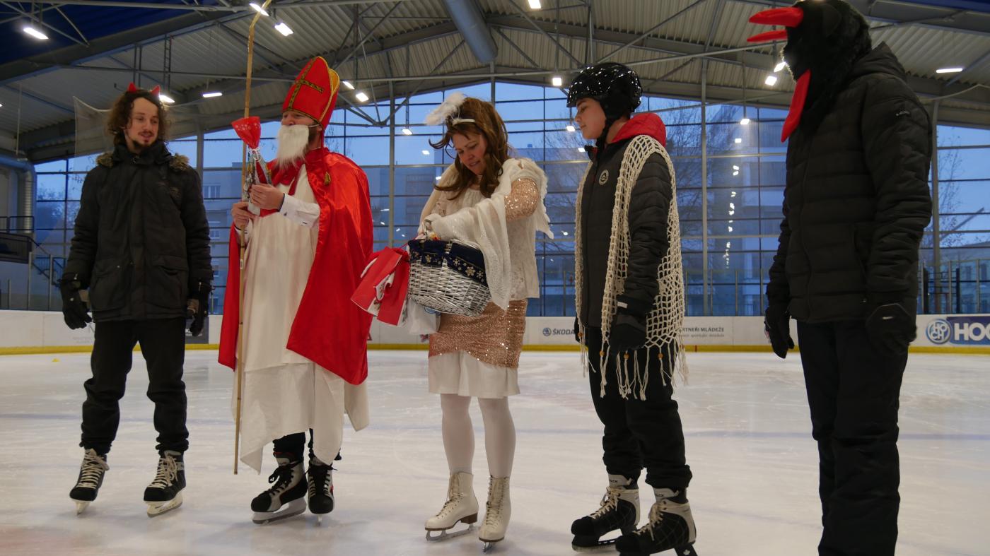 Tento týden se to Mikuláši s čerty i anděly v Plzni jen hemžilo. Na tom není koneckonců nic divného. V sobotu 9. 12. ale vyjel Mikuláš dokonce i na led, aby nadělil sladkosti bruslařům ze Školičky Jardy Kubíka.