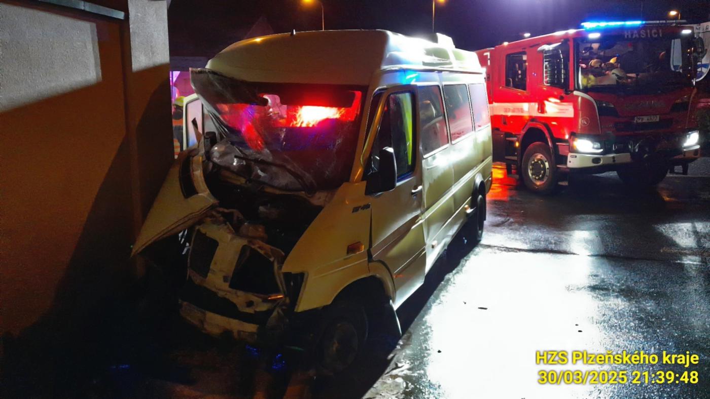 K nehodě došlo na kruhovém objezdu v Chebské ulici krátce před půl 10 večer. "Padesátiletý řidič mikrobusu tovární značky Volkswagen v prostoru křižovatky nepřizpůsobil rychlost jízdy zejména svým schopnostem, vlastnostem vozidla a povětrnostním podmínkám, kdy za deště na mokré vozovce narazil do city bloku s dopravním značením, poté narazil do obrubníku, najel na chodník a narazil do zdi," popsala nehodu policejní mluvčí Dagmar Brožová.