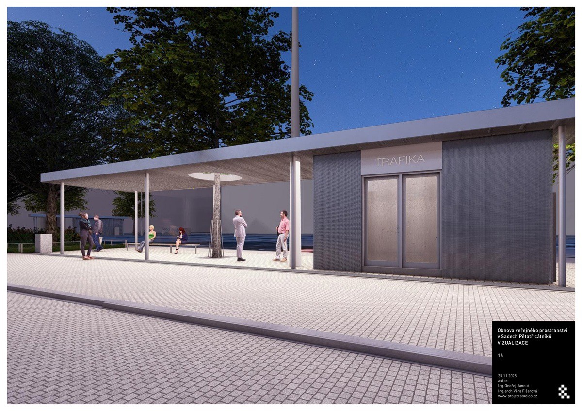 Zmizí rovněž nevzhledné reklamní plochy a místo původních kiosků vyrostou dva nové moderní stánky – trafika s občerstvením. Nový přístřešek získá i zastávka MHD. „Všechny tyto objekty budou mít zelené střechy. Zajímavostí je, že konstrukcí stánku s občerstvením bude prorůstat strom,“ doplnil náměstek s tím, že obměnou projde i mobiliář včetně hodin a parkovací místa pro invalidy se přesunou blíže k zastávce.
