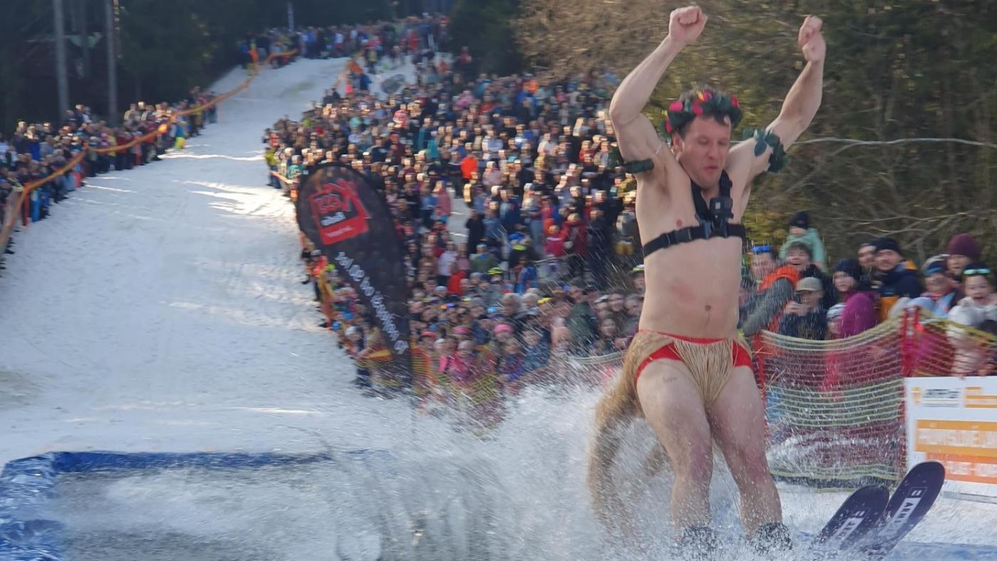 Trať lemovala zhruba tisícovka diváků, kteří si užívali za slunečného počasí tuto oblíbenou recesistickou podívanou, jíž vrcholí zimní sezona ve Ski&Bike Špičák. O výsledky moc nešlo, nakonec se po čtyřikrát zkráceném nájezdu vykoupali úplně všichni, ale úplně nejdál dojel v posledním kole ve 20 metrové louži na lyžích Martin Mazanec a stal se zimním králem šumavského Špičáku. Na snowboardu se tímto titulem pro rok 2025 může pyšnit Josef Tábor, který louži sjížděl jako Pepík. „Ve speciálech máme pak krále i královnu v lyžařském duetu dojeli nejdál Ondřej Svoboda a Lucie Schejbalová,“ uvedl Karel Samec, mluvčí Ski&Bike Špičák.