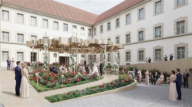 Svatební dvorek plynule naváže na revitalizované nádvoří jezuitské koleje a zvýší atraktivitu těchto prostor v centru města.
