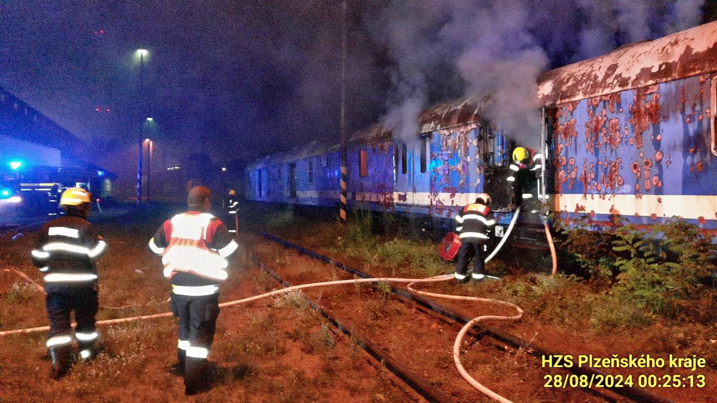 "O půlnoci jsme spolu s dobrovolnými hasiči z Doubravky a hasiči Správy železnic zasahovali u požáru vagonu v drážním depu v Plzni. K hašení jsme nasadili tři útočné proudy," informoval mluvčí krajských hasičů Petr Poncar.