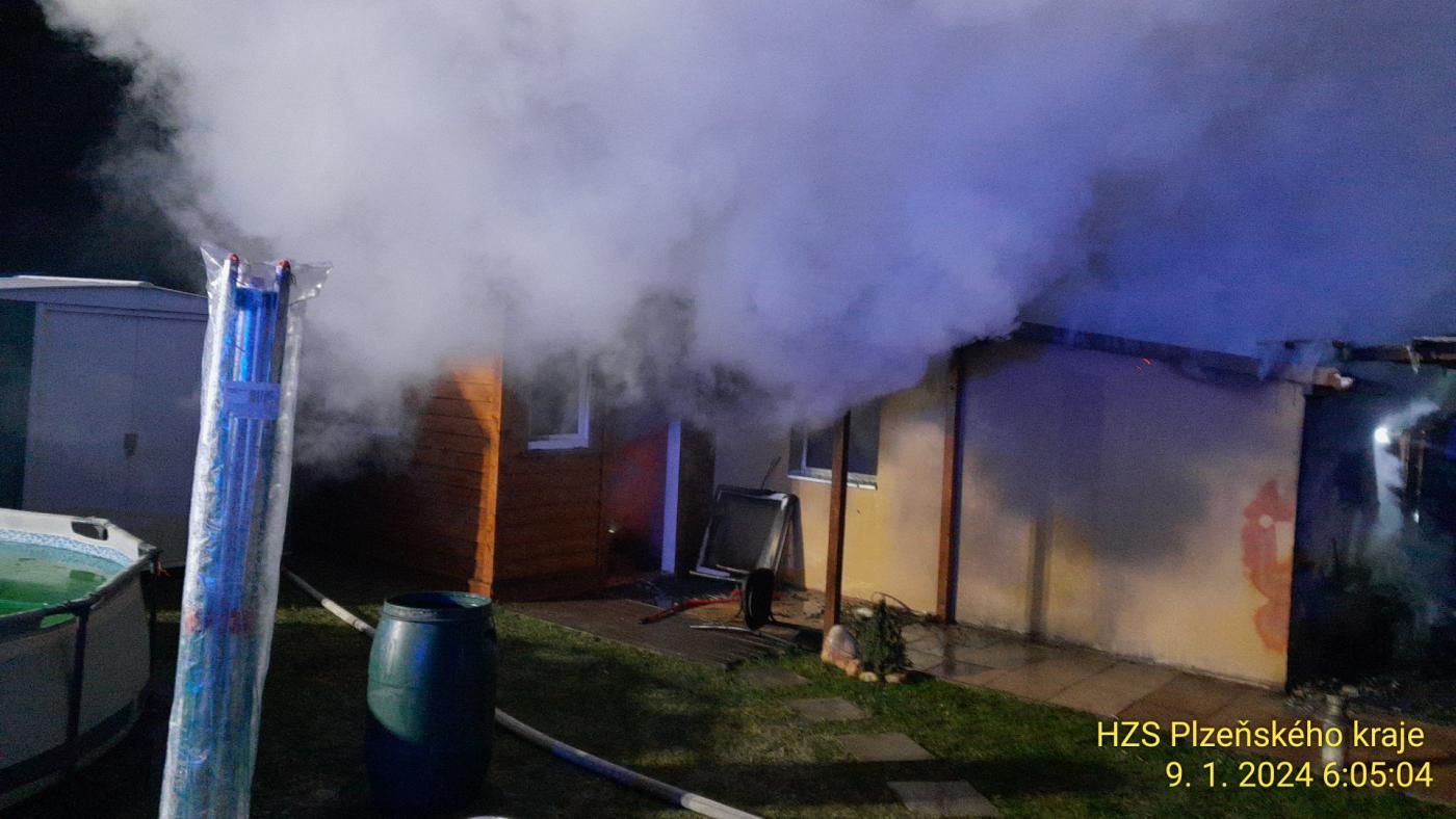 Hasiči vyjížděli k požáru po 5. hodině ranní. "Hoří zahradní chatka ve směru na Těchlovice. Nasadili jsme dva "C" proudy a hasicí hřeby, kterými jsme prohašovali podbití střechy. Rozebírali jsme konstrukci chatky, abychom se dostali ke skrytým ohniskům.," uvedl mluvčí krajských hasičů Petr Poncar.