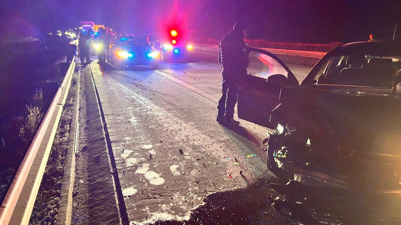 Dálnici D5 uzavřela nehoda. Policisté pronásledovali auto, vůz do nich narazil!